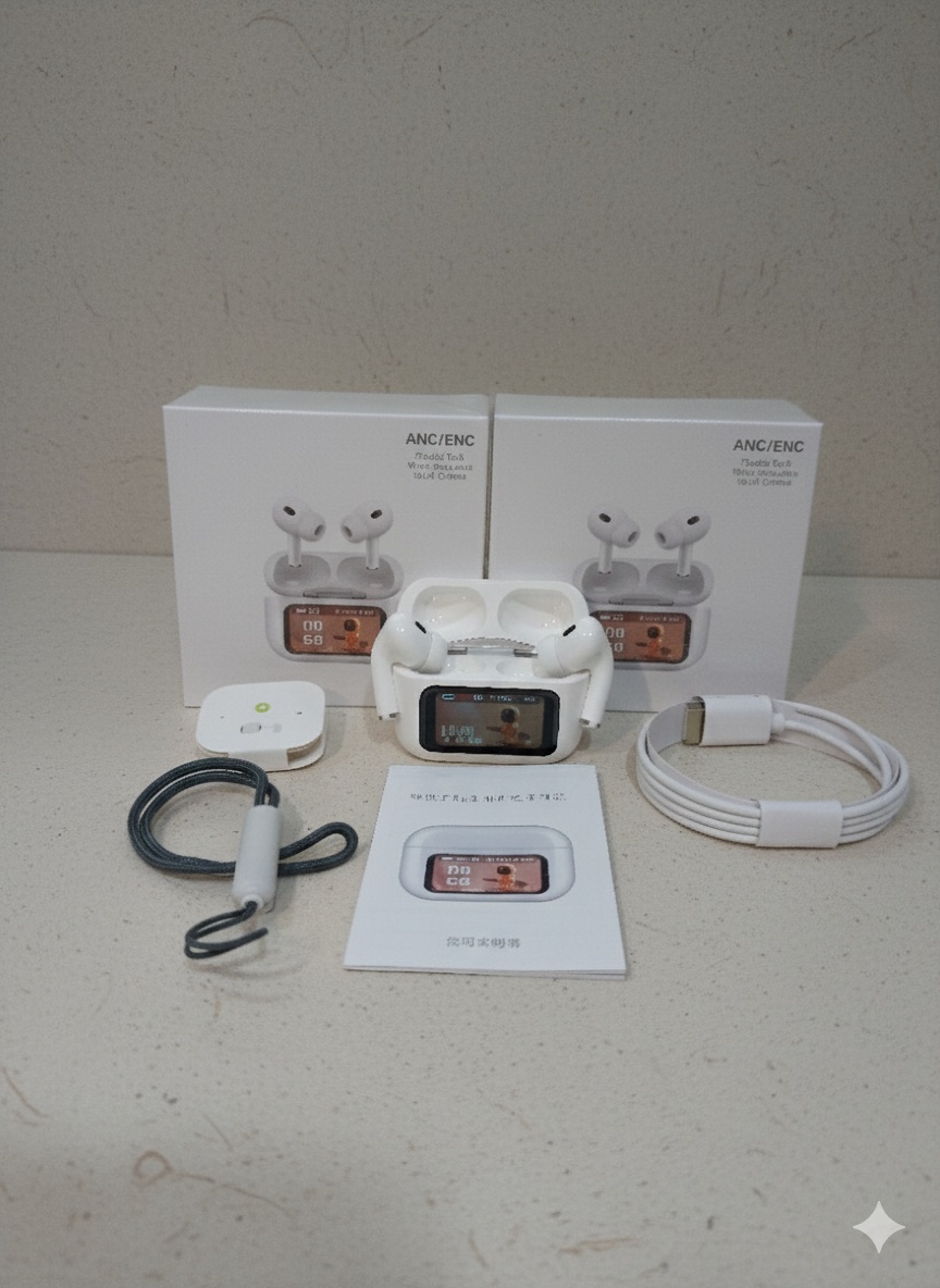 سماعة بلوتوث لاسلكية ANC/ENC بصوت نقي وعزل ضوضاء ذكي، شاشة ديجيتال لعرض نسبة الشحن، تصميم أنيق ومريح، مكالمات واضحة وبطارية تدوم طويلًا. مثالية للاستخدام اليومي في مصر.🔇 عزل ضوضاء ANC + ENC